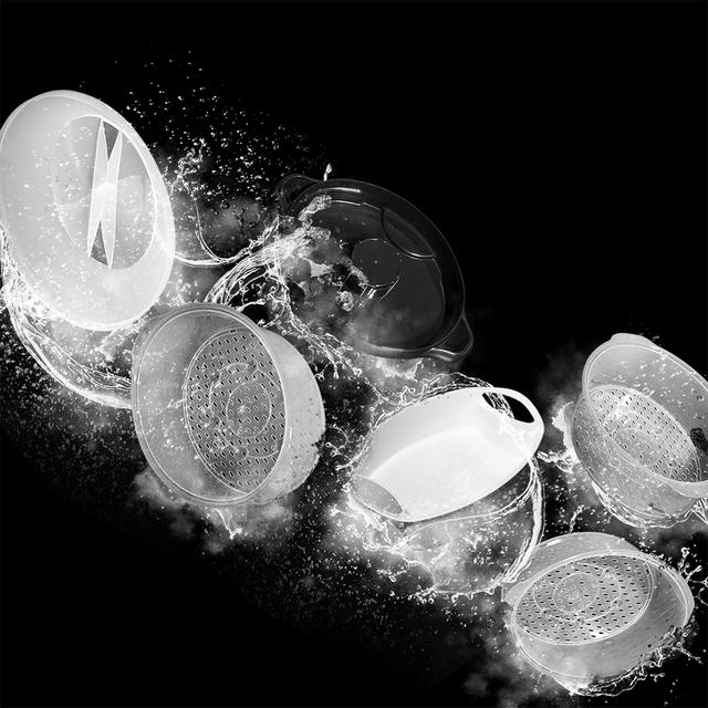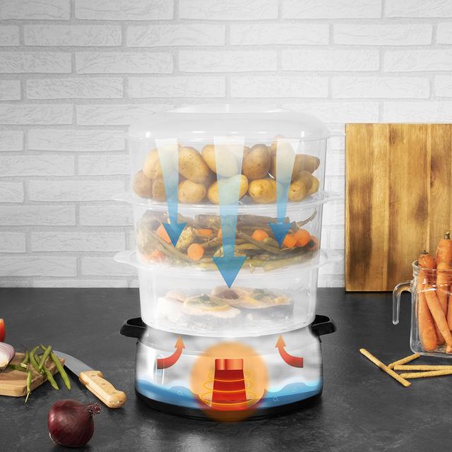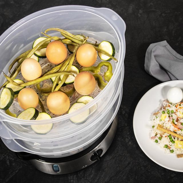 - Compact storage: the trays can be stored inside each other, reducing the space occupied by the steamer.